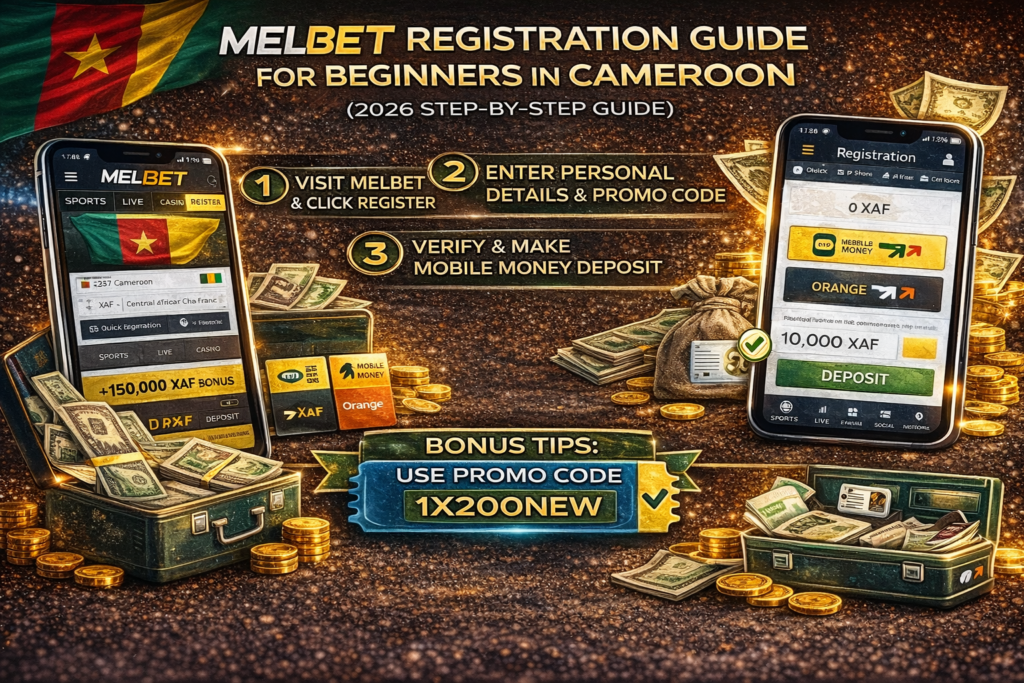 Melbet Registration Guide for Beginners in Cameroon. Looking to create a Melbet account in Cameroon? This beginner-friendly guide explains how to register on Melbet, enter a promo code, verify your account, and start betting safely in 2026.
